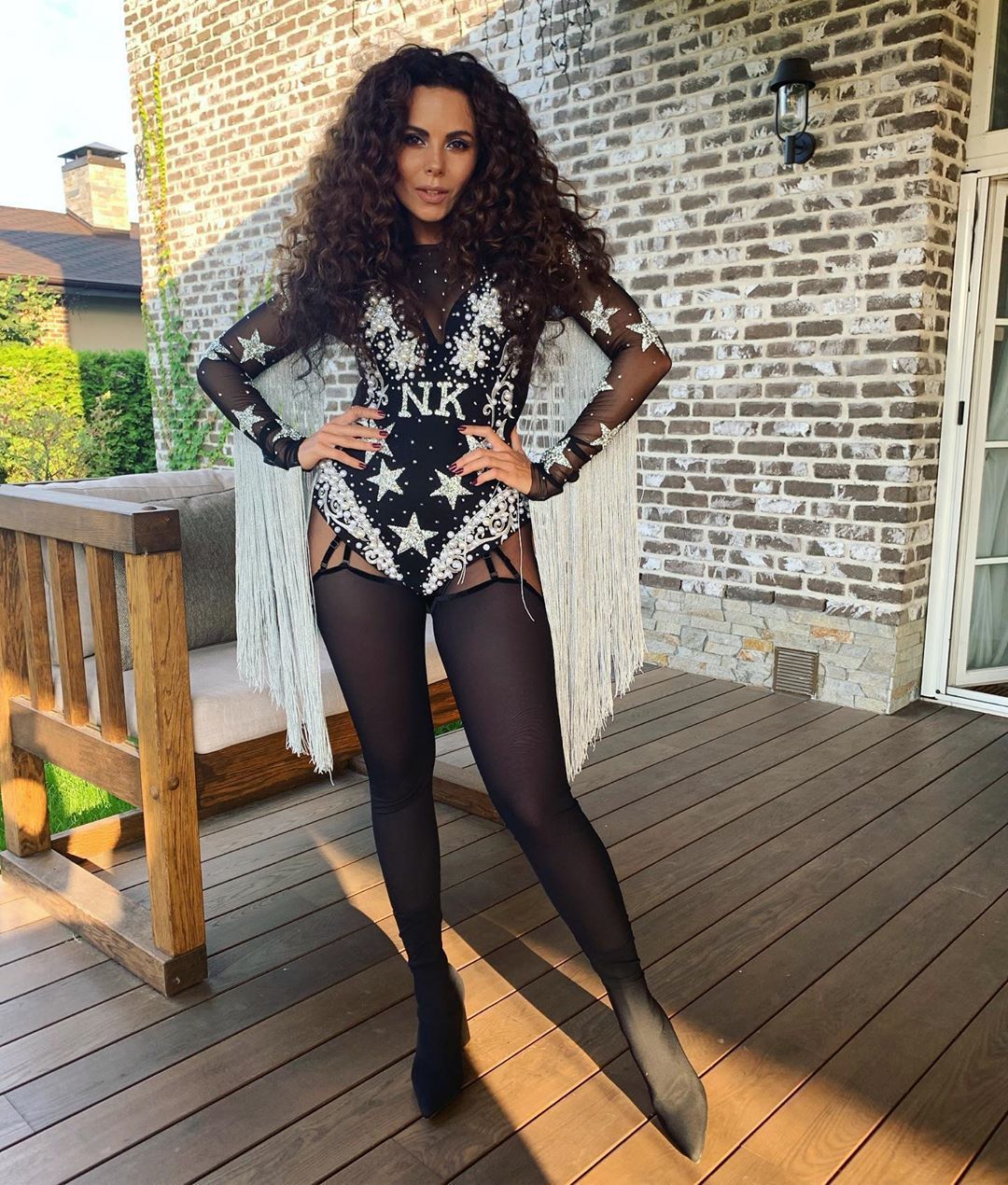 Украинская поп-звезда Настя Каменских, которая недавно показала как занимается йогой в лосинах и без макияжа, обнародовала новую серию снимков в своем Instagram. На них она продемонстрировала новый концертный наряд - боди, расшитое бисером с аппликацией в виде звезд, а также черные чулки и сапожки.