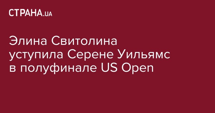 Первая ракетка Украины и пятая мира Элина Свитолина уступила американке Серене Уильямс в 1/2 финала заключительного в этом сезоне турнира серии Grand Slam - Открытого чемпионата США по теннису (US Open).