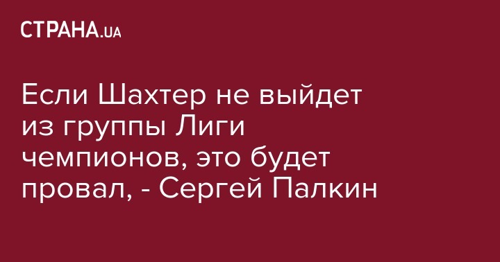 "Мы считаем, что если не выйдем из группы, то это для нас будет провал, понимаете. Наша позиция в том, что если мы не выйдем из группы, то с точки зрения всех наших усилий это будет провальная работа, если смотреть именно на Лигу чемпионов как на турнир. Мы хотим, чтобы та картина, которая у нас в головах - команда, которая играет в Лиге чемпионов и выходит из группы - она сработала", - объяснил Палкин в интервью каналу "Футбол 1", как передает портал Террикон.