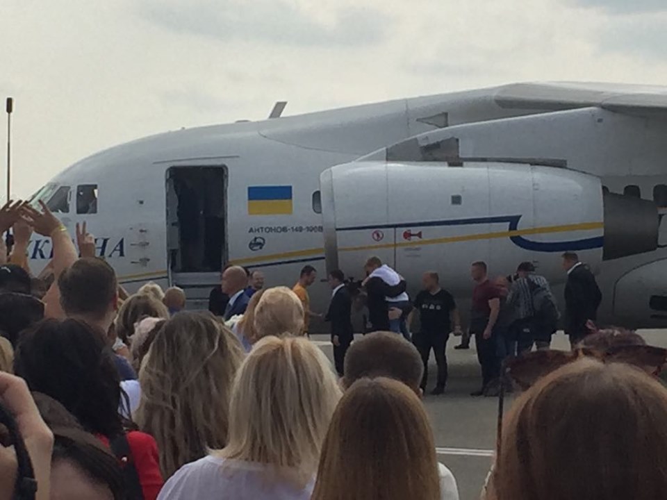 Украинцев в аэропорту встречали первые лица государства, в том числе президент Владимир Зеленский. Также бывших заключенных встречали их родные и близкие. Люди буквально со слезами на глазах кидались обнимать вернувшихся.