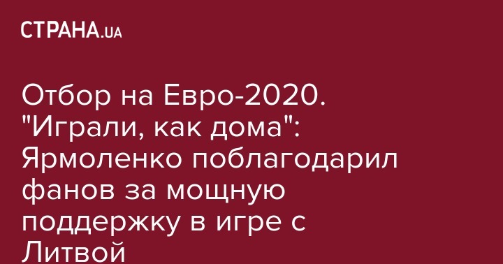 Нападающий сборной Украины по футболу Андрей Ярмоленко поблагодарил болельщиков за поддержку команды в игре с Литвой в отборе к Евро-2020.