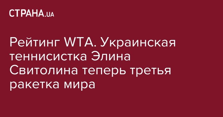 В понельник, 9 сентября, первая ракетка Украины Элина Свитолина поднялась в рейтинге Всемирной женской теннисной ассоциации (WTA) с пятого места на третье. Об этом сообщает "Укринформ".