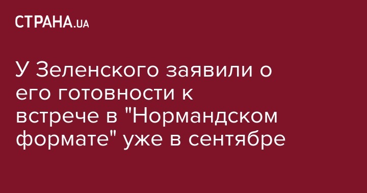 Президент Украины Владимир Зеленский готов принять участие во встрече лидеров стран "Нормандского формата" уже в сентябре. Об этом заявил глава МИД Украины Вадим Пристайко на совместной пресс-конференции с главой МИД Молдовы Нику Попеску, сообщает "Интерфакс-Украина".