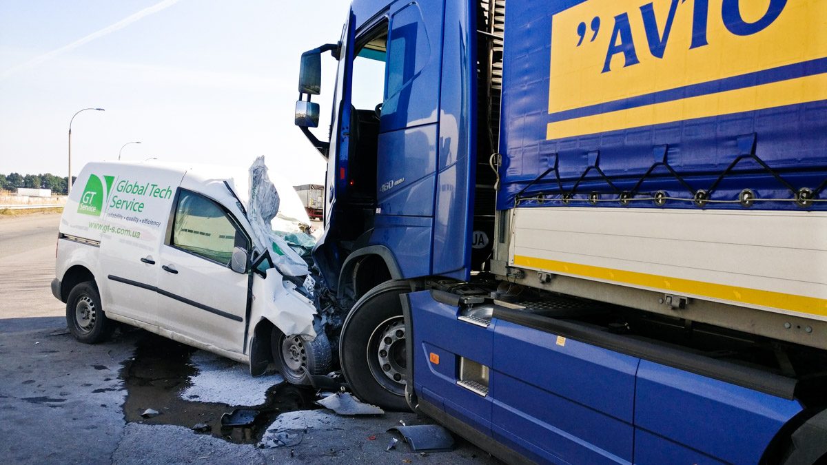 ДТП произошло около 9:30. Легковой автомобиль принадлежал компании, занимающейся холодильным оборудованием Global Tech Service. По словам водителя седельного тягача, он двигался в сторону села Зазимье. Мужчина остановился на развороте Броварской окружной за поворотом на село Требухов. В этот момент в него на большой скорости влетел Volkswagen Caddy, который двигался в сторону Броваров.