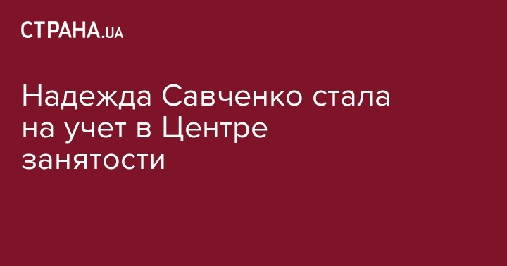 Экс-нардеп Надежда Савченко официально получила статус безработного и зарегистрировалась в Центре занятости. Об этом она сообщила на своей странице в Facebook.