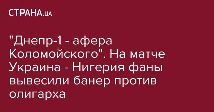 Вчера, 10 сентября, сборная Украины сыграла в Днепре товарищеский поединок со сборной Нигерии. Игра закончилась вничью со счетом 2:2. Однако боевой и бескомпромиссный поединок двух сборных запомнился не только обилием голов. Группа болельщиков вывесила на трибунах огромный банер с надписью "UEFA, Dnipro-1 is a Kolomoyskiy’s scam" ("УЕФА, Днепр-1 - это афера Коломойского").