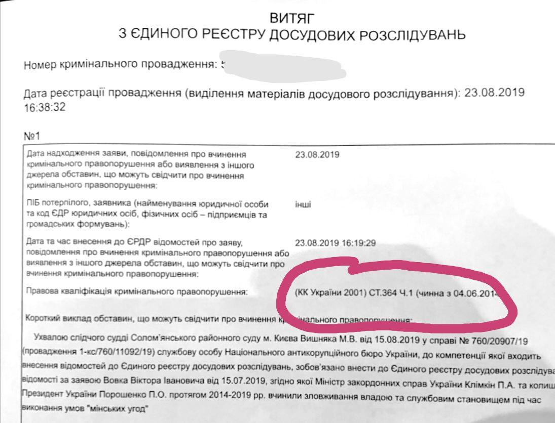 По данным канала, 23 августа НАБУ по решению суда открыло уголовное дело в отношении экс-министра Климкина и экс-президента Порошенко. Уточняется, что это первое дело НАБУ против Порошенко.