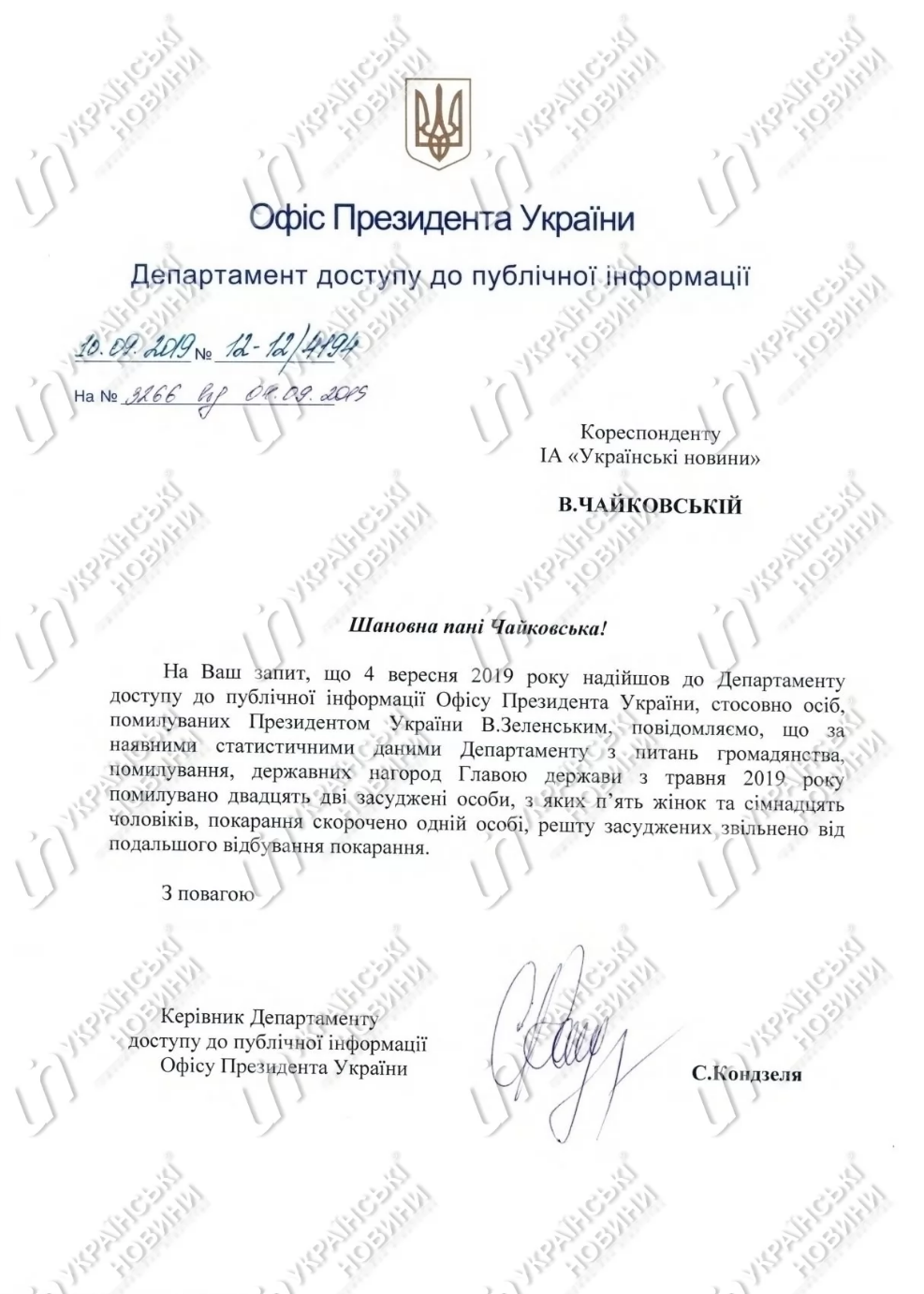 Офис предоставил данные о количестве мужчин и женщин среди помилованных. Однако засекретил информацию о помилованных иностранцах, в том числе для передачи России или на неподконтрольные территории Донбасса в рамках обменов. Как отмечают в агентстве, Администрация Петра Порошенко обнародовала данные об иностранных гражданах.