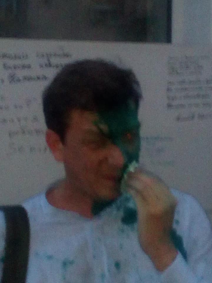 Там отмечают, что "после этого на скандальноизвестного Олеся Дония, который вызвался быть лектором на ЛГБТ-тусовке, вылился флакон зеленки". "Видимо, он хотел тем показать, что он тоже легко меняет цвета за деньги грантодателей", - написали радикалы.