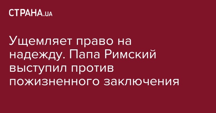 Папа Римский Франциск заявил, что пожизненное заключение не решает никаких проблем и ущемляет права на надежду. Об этом сообщает "Газета.ру".