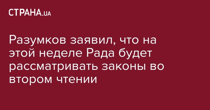 "Особое внимание требуют проекты законов, которые предусмотрены к рассмотрению во втором чтении, именно на них будет основной упор на этой неделе, поскольку эти законопроекты требуют больше времени для их подготовки, а тщательная работа комитетов с предложениями народных депутатов будет напрямую влиять на качество этих законов", - сказал Разумков.