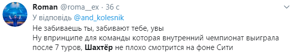 Нужно развивать футбол в Украине и повышать класс всех команд, хотя бы бывшей Высшей лиги. Ведь сейчас банально некому постоянно, регулярно держать в тонусе защиту Шахтера. А в Европе это видно. Хотя сегодня Кривцов и Ко безусловно получают несколько "уровней" опыта.