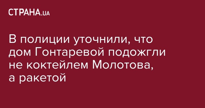 В селе Гореничи Киевской области, на месте пожара дома экс-главы Нацбанка Валерии Гонтаревой, в ходе следствия найдена зажигательная ракета и ряд других вещественных доказательств. Они переданы в криминалистическую лабораторию и уже изучаются. Камеры на месте происшествия зафиксировали одного человека.