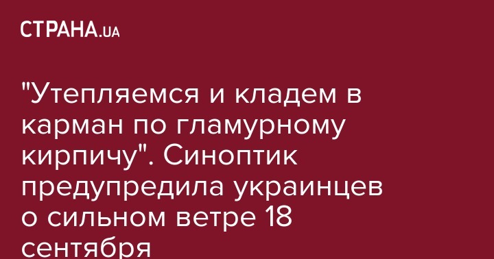 По ее словам, "главным погодным ньюсмейкером" в Украине 18 сентября будет сильный ветер. Его западные и северо-западные порывы будут достигать 15-22 метров в секунду. Стоит быть осторожными, особенно под большими деревьями, билбордами, также необходимо тщательнее выбрать место для парковки автомобиля.