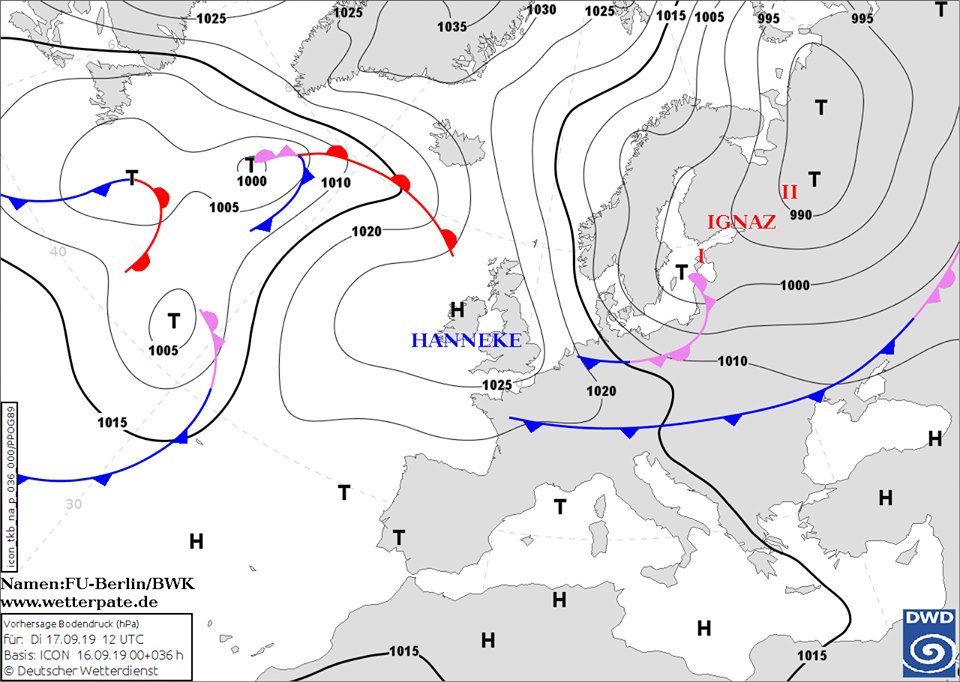 "Даже если идет атмосферный фронт, то это не значит, что дождь будет главным. Нет. Атмосфера учитывает все метеорологические нюансы, все в комплексе... Поскольку холодный воздух тяжелый, он будет давить, а Украина еще и окажется между мощным антициклоном... Hanneke и циклоном Ignaz. И вот пока эти два уважаемые атмосферные джентельмены будут бороться за зоны влияния, все, кто между ними, а это немалый кусок континентальной Европы, включая Украину, будут ощущать последствия этой борьбы - сильный, до штормового, ветер", - написала Наталья Диденко.