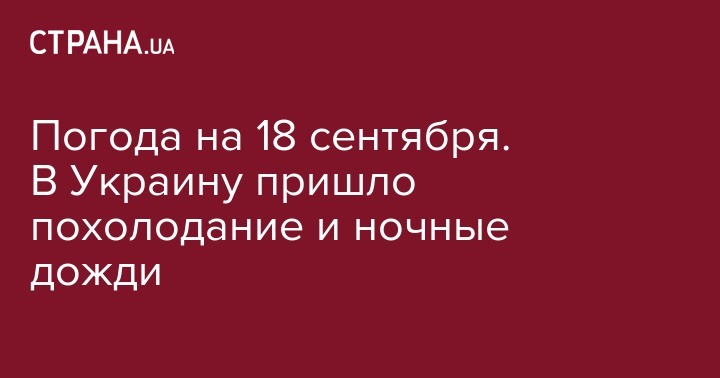 В среду, 18 сентября, в Украине ожидается похолодание. Ночью в ряде регионов ожидается небольшой дождь. В Киеве температура воздуха ночью +9…+11 градусов, днем +12…+14 градусов, ветер западный, 7-12 м/с, днем порывы 15-20 м/с. Об этом сообщает пресс-служба Укргидрометцентра.