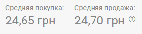 В обменках по состоянию на 08:00 средняя покупка 24,72 грн, средняя продажа - 24,76 грн.
