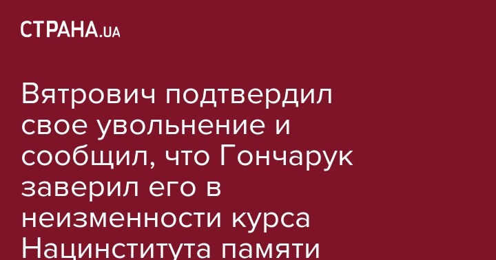 "Уверен, работа Института должна продолжаться.Должны воплотиться начатые институциональные проекты: создание Музея Революции достоинства и Архива национальной памяти. Следует продолжать работу по популяризации истории - это знания, которые делают нас не только умнее, но и сильнее. Я получил заверения от премьер-министра Алексея Гончарука что, несмотря на смену руководителя, Институт сохранит статус органа власти и инструмента политики национальной памяти, будут продолжены формат и направления работы", - сказал Вятрович.