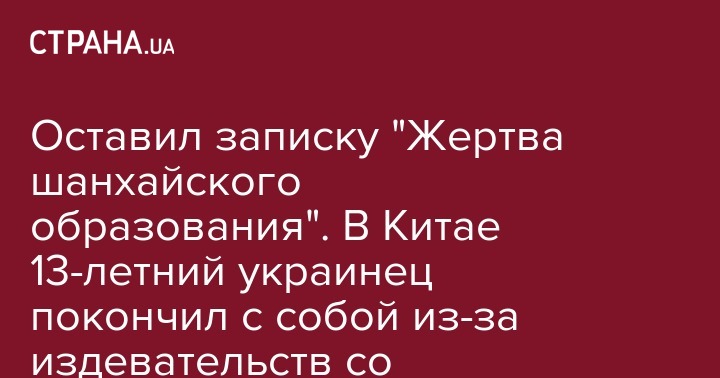 Оставил записку "Жертва шанхайского образования". В Китае 13-летний украинец покончил с собой из-за издевательств со стороны учителя
