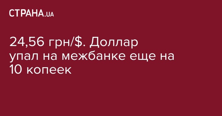 24,56 грн/$. Доллар упал на межбанке еще на 10 копеек