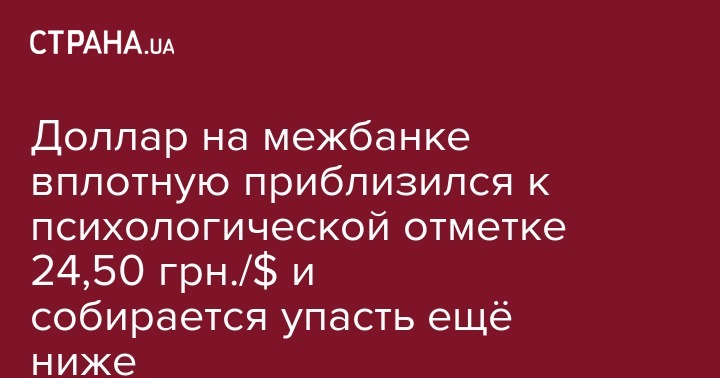 Доллар на межбанке вплотную приблизился к психологической отметке 24,50 грн./$ и собирается упасть ещё ниже
