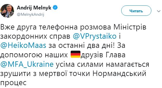 Как сообщил в своем Twitter посол Украины в Германии Андрей Мельник, это уже вторая такая беседа за 2 последних дня.