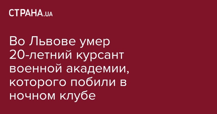 Во Львове после жестокого избиения умер 20-летний курсант военной академии Юрий Пьянило. Он был жестоко избит в ночном клубе "Вилма". Об этом сообщает Голос Сокальщины.