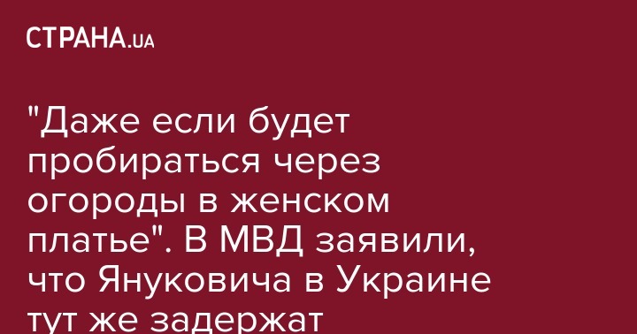 "Даже если будет пробираться через огороды в женском платье". В МВД заявили, что Януковича в Украине тут же задержат