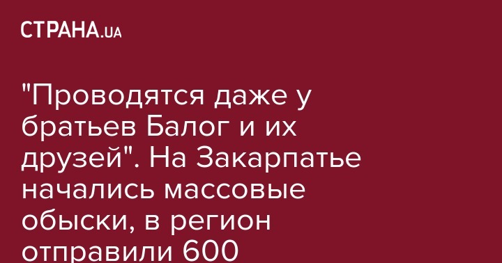 "Проводятся даже у братьев Балог и их друзей". На Закарпатье начались массовые обыски, в регион отправили 600 спецназовцев.