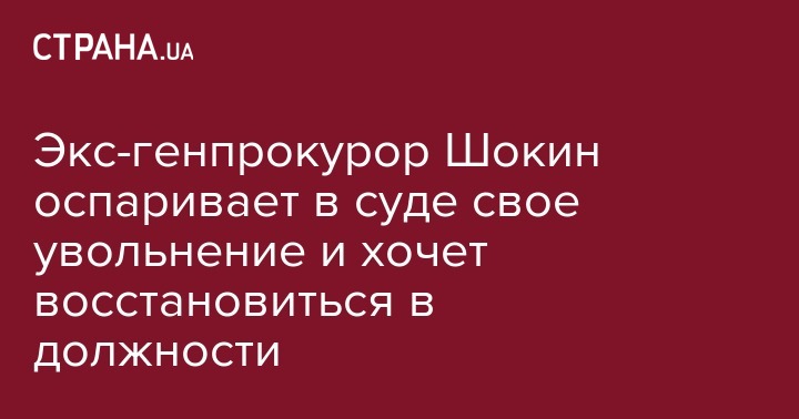 Виктор Шокин, занимавший с февраля 2015 до апреля 2016 года пост генерального прокурора Украины, оспаривает свое увольнение с должности и настаивает на восстановлении на работе. Соответствующее исковое заявление размещено в онлайн-версии Единого государственного реестра судебных решений.
