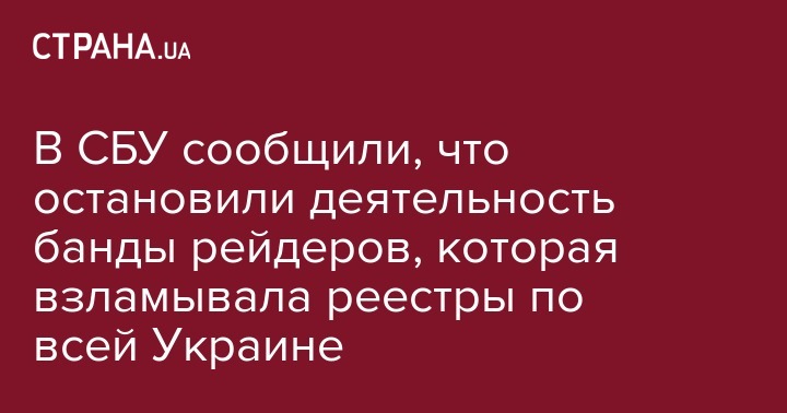 В СБУ сообщили, что остановили деятельность банды рейдеров, которая взламывала реестры по всей Украине