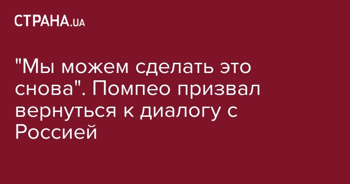 "Мы можем сделать это снова". Помпео призвал вернуться к диалогу с Россией