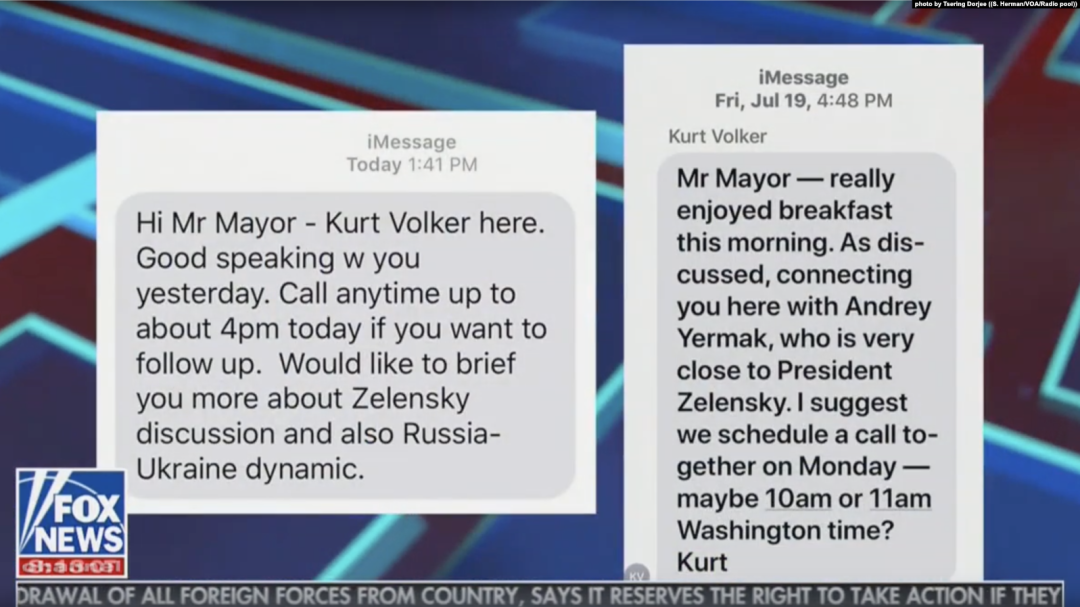 В одном из сообщений Волкер будто бы предложил Джулиани проконсультировать его в отношении президента Украины, а также динамики украинско-российских отношений. Адвокат Трампа настаивает, что он действовал от имени Госдепартамента.