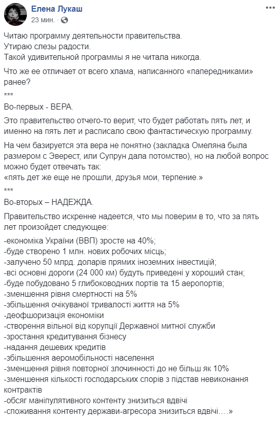 Читаю программу деятельности правительства. Утираю слезы радости. Такой удивительной программы я не читала никогда.