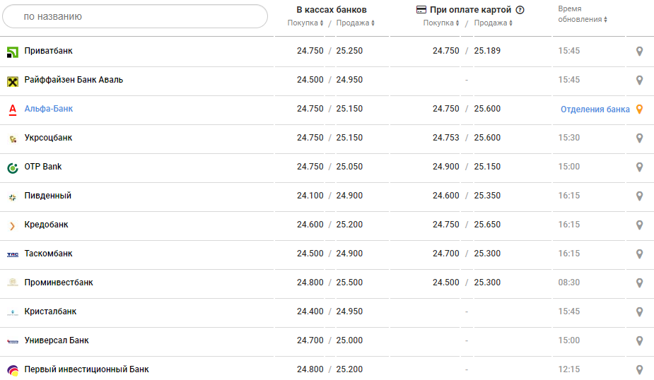 В обед покупка была на уровне 24,75-25,2 грн в зависимости от банка, покупка 25 - 25,8 грн.