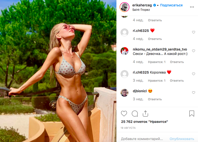 В Интаграме Эрика Герцег публикует достаточно откровенные снимки: