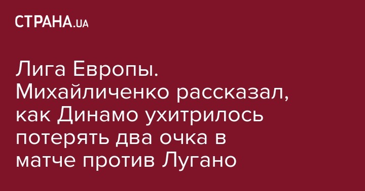 Лига Европы. Михайличенко рассказал, как Динамо ухитрилось потерять два очка в матче против Лугано