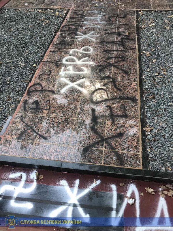 Злоумышленник нанес краской изображение нацистской свастики и антисемитские надписи на мемориальном комплексе, построенном на месте казни нацистами более девятисот евреев во времена Второй мировой войны. Им оказался киевлянин, который является фанатичным сторонником свастик и рун, которые использовались нацистами.