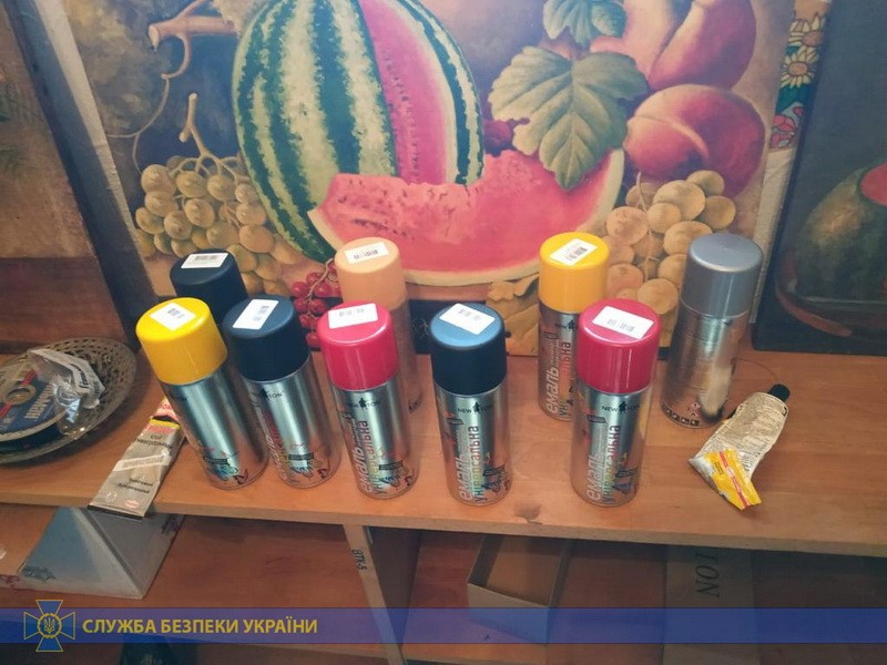 Кроме того, у него дома найдены почти тридцать металлических свастик, изготовленных своими руками в собственной мастерской, карты Кировоградской и Николаевской областей, а также соответствующие записи с отметками объектов, которые он собирался осквернить, аэрозольные краски серого и черного цветов, которые полностью совпадают с теми, которыми был осквернен мемориал.