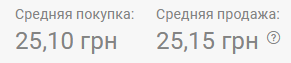 В обменках по состоянию на 08:00 средняя покупка 25,07 грн, средняя продажа - 25,15 грн.