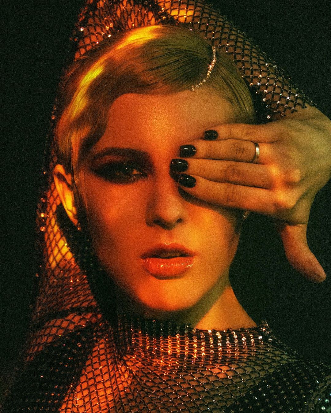 Анонс мероприятия Maruv сопроводила снимками в новом образе. На пяти фотографиях она одета в блестящую кольчугу поверх черного топа. Ее прическа напоминает стиль 20-30-х - гладкая укладка с ретро волнами. Яркий макияж с акцентом на глаза и черный лак на ногтях.