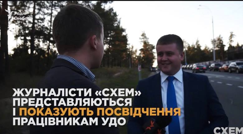 А вот он же в статусе сотрудника ведомства Гелетея общается с журналистом "Схем".