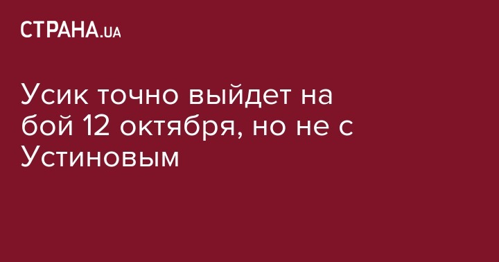 "Нет шансов, что Усик вообще не подерется 12 октября. Но Устинов точно не будет его соперником. Рассматриваются другие варианты, пока не скажу, какие", – рассказал промоутер Усика Александр Красюк изданию "Спорт-Экспресс".