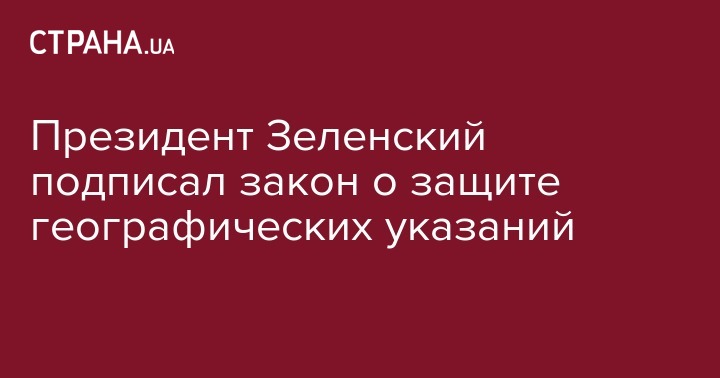 Глава Украины Владимир Зеленский подписал закон "О внесении изменений в некоторые законодательные акты Украины по усовершенствованию правовой защиты географических указаний" (№123-ІХ). Об этом сообщает пресс-служба президента в среду.