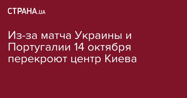 В понедельник, 14 октября, в центре Киева из-за футбольного матча Украина - Португалия будет перекрыто движения транспорта, зато метро будет работать в этот день на час дольше. Об этом сообщает пресс-служба КГГА.
