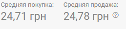 В обменках по состоянию на 08:00 средняя покупка была 24,68 грн, средняя продажа - 24,77 грн.