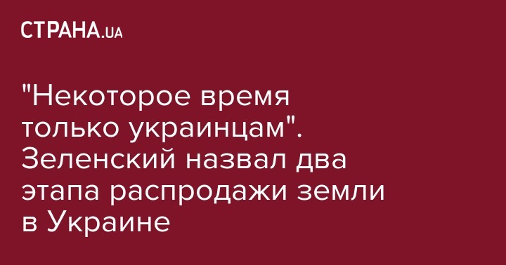 "Некоторое время мы должны продавать землю только украинцам. Второй период, сами фермеры говорят, когда наши уже купили, когда у нас уже кредитная ставка, когда уже у нас льготы, тогда вы можете уже открыть другим. Другим иностранным компаниям, которые будут 100% работать на этой земле. И будут украинцы работать. Но это будет уже через несколько лет", - пояснил Зеленский.