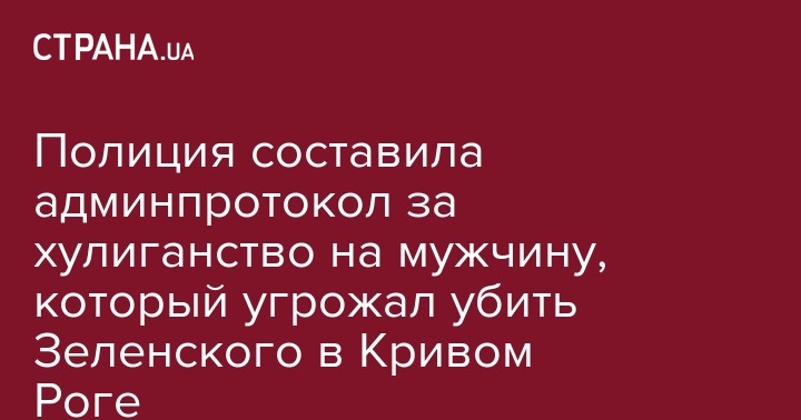 Полиция составила админпротокол за мелкое хулиганство на угрожавшего убить президента Владимира Зеленского жителя Кривого Рога Днепропетровской области. Об этом сообщила представитель пресс-службы Национальной полиции области, пишут Украинские Новости.