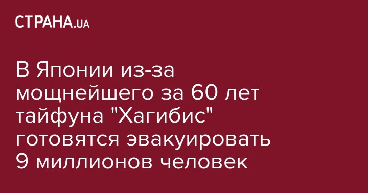 В Японии 1,12 миллионам граждан предписана обязательная эвакуация, а еще 7,97 миллионам рекомендовано покинуть потенциально опасные территории из-за тайфуна "Хагибис". Об этом сообщает местный телеканал NHK