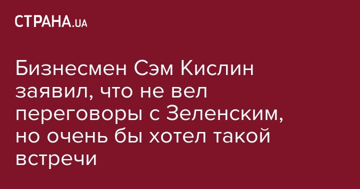 Однако глава Офиса президента Андрей Богдан заявил, что Зеленский не встречался в США с бизнесменом Сэмом Кислиным.